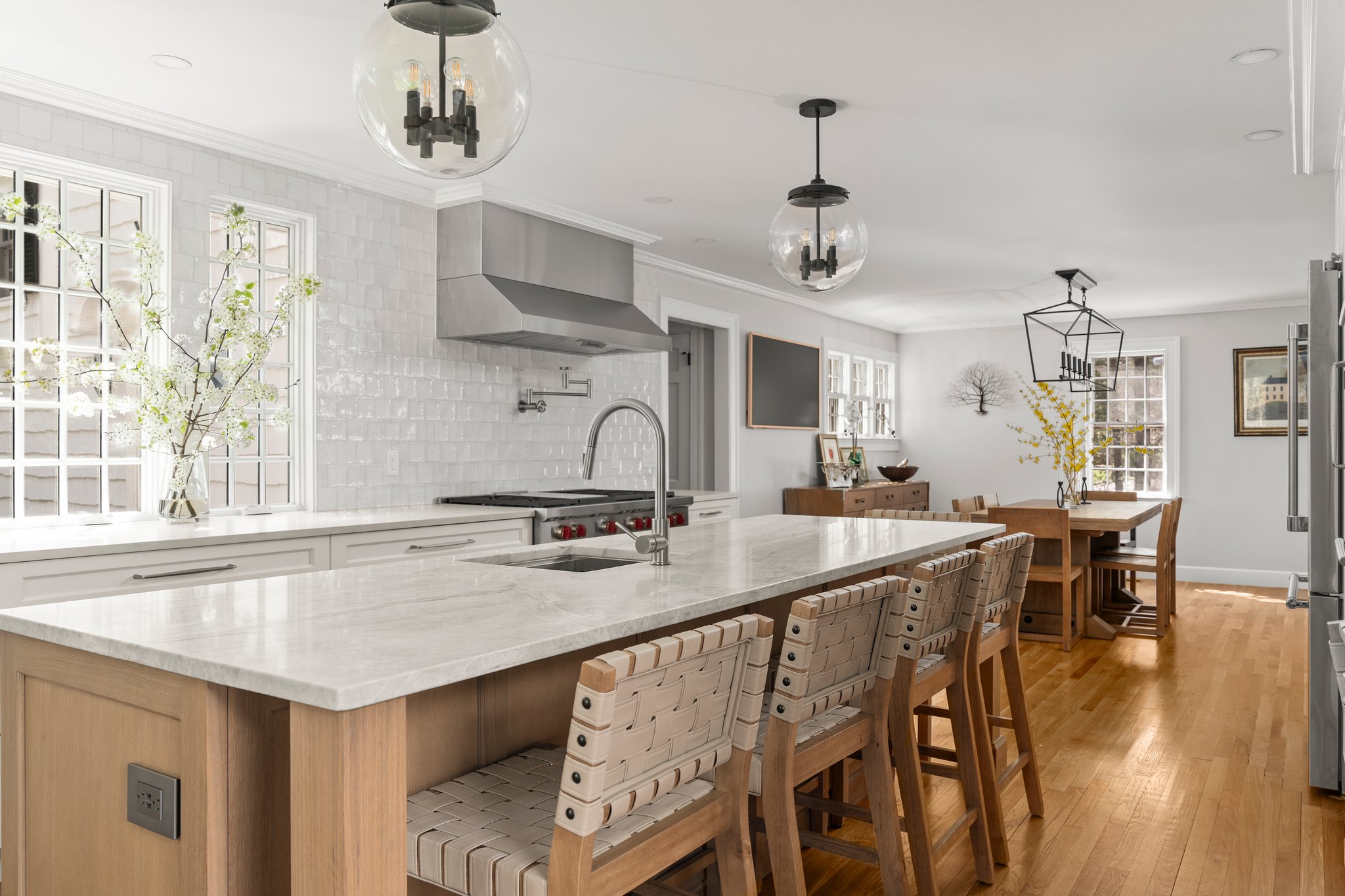This Loring residence reflects Woodworks’ commitment to clear execution, durable materials, and thoughtful detail. Custom millwork, built-ins, and light-filled interiors create a cohesive flow between kitchen and living spaces, balancing modern comfort with timeless New England character. Every element was carefully coordinated to ensure long-term performance, clean finishes, and a home designed to live beautifully for decades.